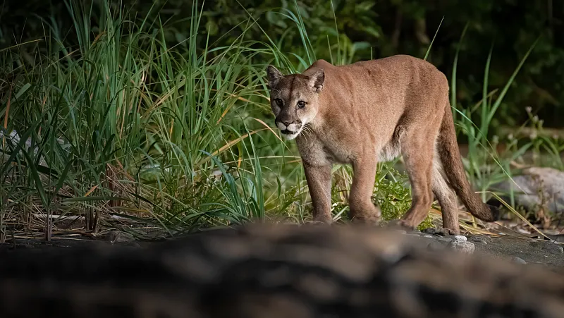 A mountain lion (puma concolor) spotted near the north end of Vancouver Island, BC, Canada. Photo courtesy of and copyright Jarrett Lindal of Jarrett Lindal Media. All rights reserved.