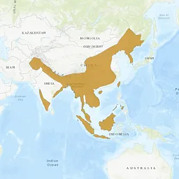 This cat has the broadest geographic distribution of all the small Asian cats, inhabiting forest areas throughout Southeast Asia, spanning 21 countries including China. These cats inhabit habitats from lowland tropical evergreen rainforest and plantation forests at sea level to moist temperate and dry coniferous forests in the Himalayan foothills at elevations of 1,000 to 3,000 meters. This species also does well in farmland environments and on coastal islands.