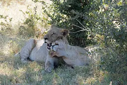 Lions are primarily terrestrial and are not adept climbers. However, they will often spend the day resting in the branches of a tree. Furthermore, lions are primarily nocturnal, but as with other felids, there are no hard and fast rules as to when they are active. Interestingly, lions are the least active of all the felids. The lion’s primary prey consists of ungulate species. However, lions have been observed feeding on a variety of land mammals of all sizes from a hare to the occasional young elephant. Lions have occasionally been observed feeding on aquatic species.