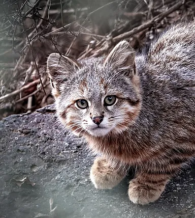 The pampas cat’s distribution in the mountainous areas of South America includes a great variety of habitats. While the cat typically is associated with the pampas (open grasslands), it also can be found in forest habitats, such as the Chilean cloud forests and the thorn forests of the Paraguayan Chaco.