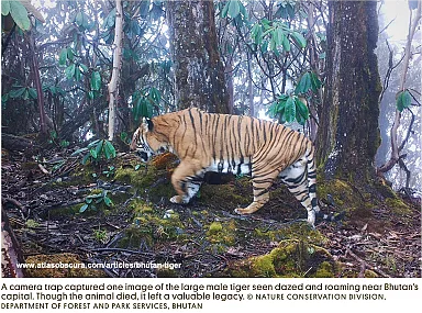 In March 2018, something unusual happened near the outskirts of Thimphu, the capital city of Bhutan. Photos emerged of a large male tiger wandering in broad daylight, unconcerned with the presence of people nearby. Such behavior alarmed wildlife officials, who then brought the animal into captivity. They feared these symptoms were caused by a disease and did their best to keep the animal alive. Unfortunately, the tiger succumbed to its affliction.